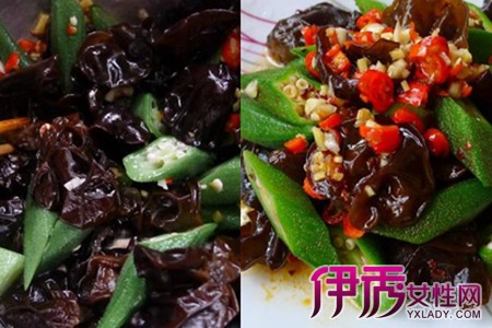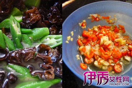食材:秋葵200克、黑木耳100克、大蒜、辣椒、姜、香醋、生抽、油、食盐。