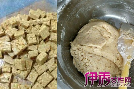 之后将面粉与花生混合在一起并搅拌均匀,然后将搅拌均匀的食用油与面粉再次混合在一起搅拌。如果面粉太干无法融合在一起的话可以再加入适量的食用油一起搅拌。