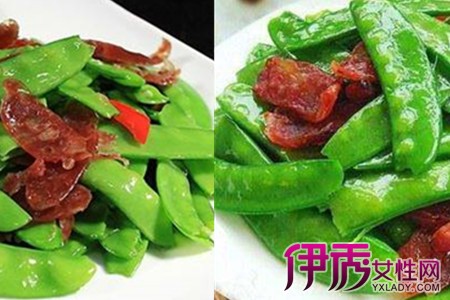 第二,热锅入油放入蒜瓣爆香后置入腊肠小炒至色变后,入荷兰豆和彩椒,入适量清水将菜翻炒至断生即可出锅。【女物原创未经允许,谢绝转载!】