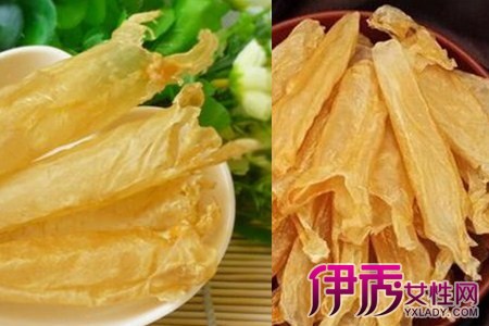 最后让我们来学习它的食用方法吧:首先我们先将花胶放在水里浸泡,你可以泡一个晚上隔天起来的时候在取出来。将花胶切快,放在锅里用效果熬,也可以用隔水炖的方法。怕腥味太重的人可以放一块猪骨和姜片进去一起熬煮,一般熬的时间需要几个小时;等到熬得差不多的时候,可以放入一点香菜或葱花。