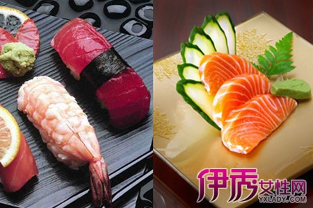 鲑鱼。即我们常说的三文鱼,肉质滑嫩,令人尝后觉得回味无穷,尤其是它本身拥有肌理间的脂肪层,因此十分肥美。它不仅可以用于各种寿司的制作,还可以做成刺身或是炙烤。