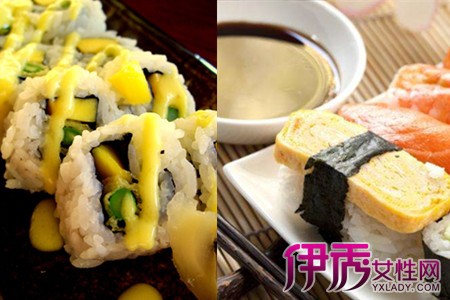 除了以上稍显华丽的材料,还有家常的寿司,所用材料十分朴素常见,能满足人们随时随地对寿司的需求。家常寿司的材料为紫菜,米饭入盐和白醋搅拌均匀,火腿切大小适宜的条状并用油锅小火煎片刻,鸡蛋加盐搅散打匀后用热油锅摊熟切成丝。以上材料准备好,用常规方法卷起并切成大小适宜的块状,这便是最家常的寿司。【女物原创未经允许,谢绝转载】
