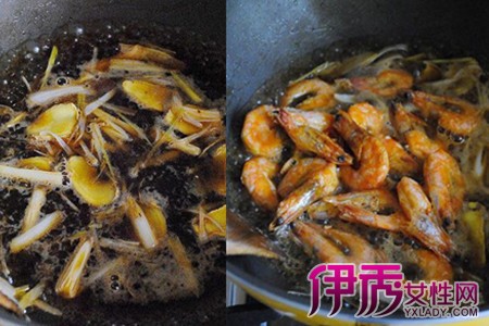 在炒锅中倒入橄榄油,油量要比平时烧菜稍微多一些,开火烧至六成热,倒入腌好的基围虾。把基围虾煎至两面金黄,煸出虾油,就盛出锅待用。用锅里剩余的油把葱丝和姜片炒香,倒入调好的酱汁,加入煎好的基围虾,再倒入适量料酒,加盖,中火焖煮至汤汁收干,出锅前加少许盐调味即可。