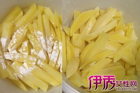 接着,人们就可以直接进行缠裹淀粉。人们需要将每一根薯条手工进行裹淀粉。并且尽量裹的均匀充分。这个过程人们要小心力度不要过大,以免造成土豆条截断的现象。并且一定要注意的是,把握适度显得很重要。这个步骤对于整个制作薯条的过程来说十分重要。这是比较关键的一步,会影响到薯条的口感。所以裹淀粉是一个重要步骤。