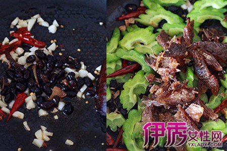 第一种:蒜香豆豉鲮鱼炒苦瓜。