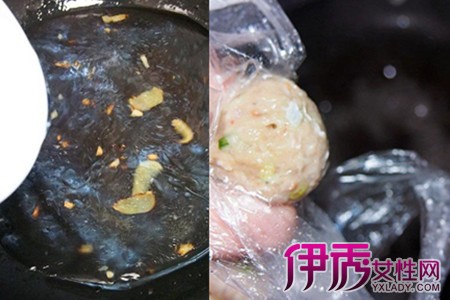热锅凉油,下蒜末和姜片爆香,加适量清水,大火烧开。水开后,转小火,用左手把鲮鱼肉挤成圆形鱼丸,右手拿勺子沾水后刮下鱼丸放入锅里,直到把所有的鱼肉挤完。