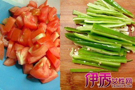 番茄清洗干净,切成小块。葱白切段,大蒜切末,生姜切末青椒洗净切丝。在锅里倒入少量食用油,烧热,下葱姜蒜爆香,加入青椒丝炒香。