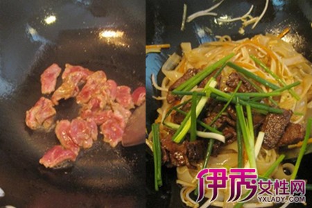 热锅凉油,下腌好的牛肉翻炒,炒至八成熟,盛出锅备用。在锅里重新倒一些油,下大蒜片爆香,加入胡萝卜丝、韭黄丝和绿豆芽翻炒片刻,加入适量白砂糖和食盐,炒匀,再加入河粉,大火快速翻炒,淋入一些生抽和老抽翻炒均匀,最后倒入炒过的牛肉和切好的葱段,炒匀后即可出锅。