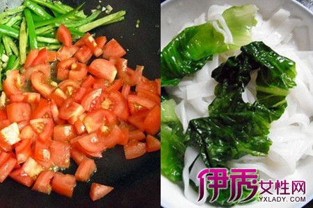另外准备一个干净的锅,加适量清水,烧开,放入河粉烫三十秒,捞出锅滤干水分,盛入碗中。用烫河粉的水烫几片青菜,摆在河粉上,淋上煮好的番茄辣椒汁,搅拌均匀,即可食用,酸酸辣辣的河粉超适合夏天,清爽开胃。