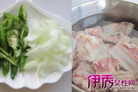 食材:羊排700克、青辣椒、生姜、干辣椒、洋葱、大蒜、草果、花椒粒、老抽、食用油、盐。青辣椒洗干净,切成小块,洋葱洗净切块,大蒜切片,干辣椒洗净切块,生姜切块。羊排用温水洗净,切成小块,放入锅里,加入适量凉水,煮开,捞出锅沥干水分。