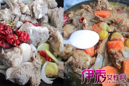 羊排倒入砂锅,加入大葱、生姜、花椒、甘草、八角、草果、食盐和清水,烧开后,加盖转中小火炖一个小时。一个小时后,羊排已经炖软了,加入白萝卜块,加盖继续炖。白萝卜炖软后,下几粒枸杞,关火。把羊排盛入碗中,可以根据个人喜好加一些香菜、蒜叶和胡椒面。【女物原创未经允许,谢绝转载!】