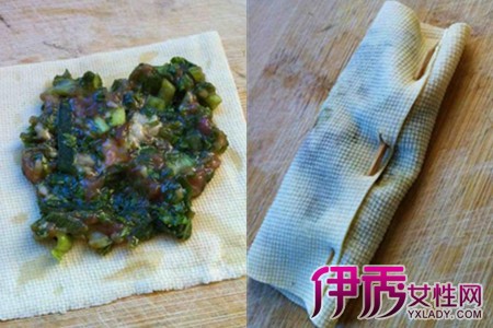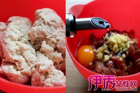 猪肉馅可以购买现成的,不过买回之后还要继续剁,因为市场上的肉馅一般都不够细。加葱姜水的肉馅要比直接加葱姜末的更香些,搅拌肉馅要按一个方向搅,葱姜水要一点点地加入,慢慢搅拌,直到把肉馅搅出粘性为止。由于豆腐皮有豆腥味,因此要把肉馅调得味道重一些,这样可以盖过豆腥味。