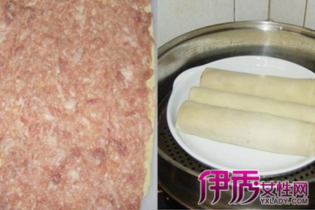 豆腐皮平铺在案板上,取适量肉馅铺在豆腐皮上,用铲子将其压平,从豆腐皮一端卷起来,放入蒸锅,大火蒸二十分钟。二十分钟后,取出,晾凉后,用刀切片装盘即可。