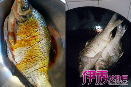 第二步:将鲫鱼去掉内脏,并且清洗干净,鱼胆要小心弄走,弄干净之后的鲫鱼的表面切花,用盘子装好。