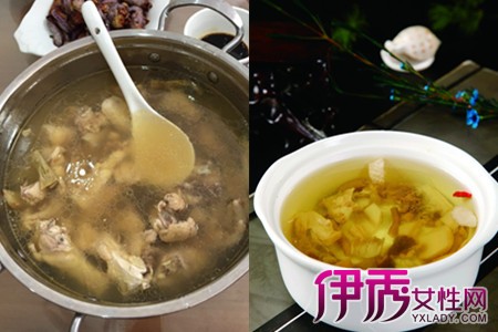在鸡肉中,若要论何者为美容价值最高者,则自然是乌鸡当首。而若要问何者营养价值最高,老母鸡当仁不让。乌鸡温中益气,更能够养血黑发,滋润皮肤。滋补乌鸡汤做法:把乌鸡剁块,放入清水浸泡,入锅中煮沸后捞出控干;将当归、黄芩、沙参、大枣、枸杞子洗净;将备好的材料放入炖锅中,用旺火炖沸,转小火慢炖2小时,加好调味料后高汤出锅。