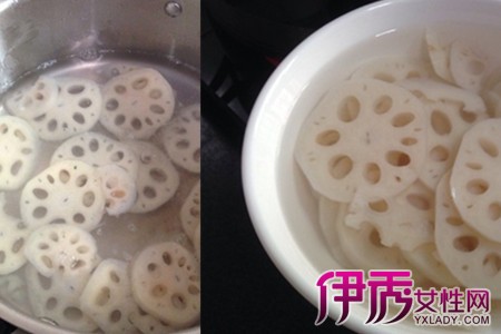 首先,我们需要将购买回来的藕清洗干净,然后再将它切成片。在切藕的时候经常会有丝,这个时候我们一定要耐心将它弄干净。