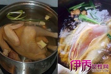 三、架锅烧水,待水开以后放入整鸡,水必须要没过鸡的表面,煮三分钟。三分钟以后立刻关火,不开锅盖焖五十分钟。