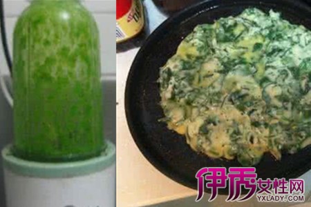 然后,把菠菜段放入榨汁机中搅拌成菠菜汁。把榨好的菠菜汁连同菠菜叶一起倒入一个碗中,打入几个鸡蛋,加入适量的盐和胡椒粉搅拌均匀。