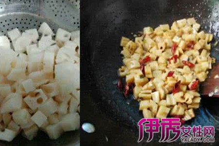 首先,将莲藕洗净,特别是莲藕的截段上,一定要清洗干净表面的泥沙。用刀把处理好的莲藕切成丁状,将其放入清水中,浸泡一段时间就可以捞出沥干水分。