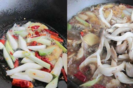 第三种:蘑菇炖鲤鱼。食材:鲤鱼500克、蘑菇200克、豆皮100克、干辣椒、大葱、花椒粒、胡椒粉、白砂糖、淀粉、酱油、料酒、鸡精、食盐、香菜、食用油、食盐。