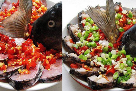 第四种:剁椒鲤鱼。食材:鲤鱼1条、剁椒、葱、姜、蒜、料酒、白酒、胡椒粉、食盐、食用油。