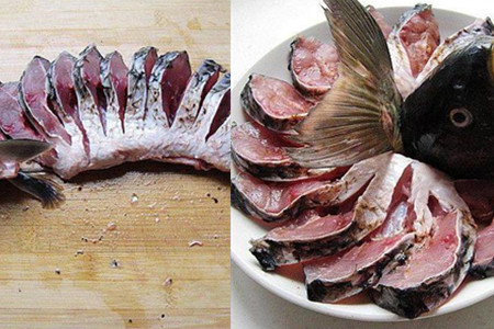 鲤鱼的腥味比较重,腌鱼的时候除了要用料酒还要加一点白酒才能去掉腥味。腌鲤鱼的时候不要放太多盐,因为剁椒本身很咸,放太多鱼肉会太咸。【女物原创未经允许,谢绝转载!】