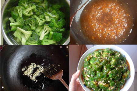 步骤:1、西兰花按照上面的方法浸泡冲洗干净备用。蒜去皮拍成蒜末。