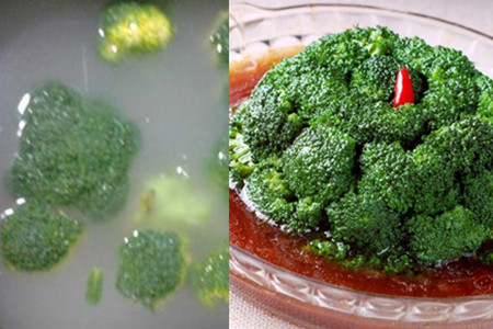 西兰花上有一朵一朵小小的花蕾,稍一用力,就会掉落碎零。虽然一下子看去好似很干净了,其实里面藏有灰尘或小虫子,还可能有残留的农药。怎么办呢?