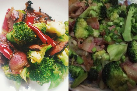 腊肉炒西兰花也是绝配的。虽不是什么贵格菜色,但是用来下饭和下酒真的是很不错的选择。买回来的西兰花切好后用盐水浸泡1小时。然后用热水出一出水。腊肉洗干净后切片。红辣椒少许切粒。锅热油开后,把腊肉放下去爆炒。待出油后也把出了水的西兰花倒下去一并爆炒。炒至2分钟后把红辣椒也放下去。