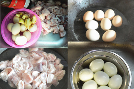 2、关于鸡蛋:先另外用水来将鸡蛋煮好,生水下锅,煮到鸡蛋大概九成熟左右,就关火取出来剥开壳。