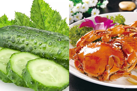 炎热的夏天一到,有很多人喜欢吃凉菜,比如凉拌皮蛋、凉拌黄瓜啦,等等。还有海鲜类的大闸蟹,想必也是吃货们的心头好。可是大家知道吗,黄瓜是不能和蟹类一起吃的,因为黄瓜会将螃蟹里的维生素B1破坏掉。影响肠胃对营养的吸收。黄瓜还不能和芹菜同食,共食会使芹菜里的维生素C分解,是营养价值不能充分被吸收。杨梅也是和黄瓜相克的。