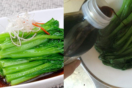 第四,将煮好的菜心捞出码在干净的盘子上面,放上姜丝和蒜末,然后均匀的在上面浇上适量的酱油和热油即可食用。