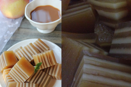 注意一定要按顺序进行,注意时间的把握,最后一层黄糖粉浆蒸的时间要相对长一些,要蒸10分钟左右,因为累计的多层需要更长的时间才能蒸好。蒸好后不要急着开盖,要焖火20分钟左右才能开盖。这样出来的椰汁马蹄糕才漂亮好吃。