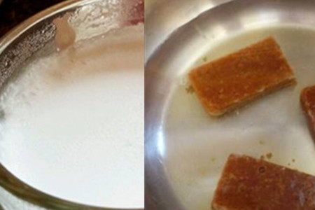 第二步就把黄片糖加水煮,糖和水的比例大约为1:5,不要放太多的水,这样糖水的甜味就会变淡,影响糕的味道。煮的时候火不要太大,很容易煮干,也不要太小,费时间,中火就好。