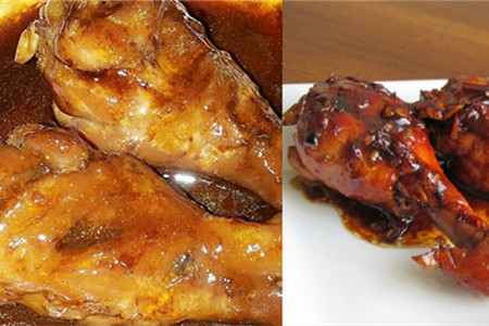 第三道,红烧鸡腿。肉可以饭桌上不可或缺的角色,小时候家里为了让孩子好好吃饭,都会用鸡腿来做诱饵。红烧鸡腿的原料是鸡腿、油、酱油、料酒、姜末蒜末、盐、味精。在做菜前要把鸡腿用料酒和盐腌制一下,戳几个洞让它快熟,用开水焯到半熟备用。大火下姜末蒜末炒香,加入鸡腿炒至表面有点焦黄,调味,并加少许水,中火收汁。