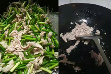 要准备的原材料有蒜苔和肉丝。首先把蒜苔洗净,把头上的那个须给去掉,接着将蒜苔切成三四厘米长的段备用。接着再将肉丝用豆瓣酱、姜、蒜、淀粉、料酒一起腌制15分钟。将锅里放入油烧热了之后加入蒜苔翻炒,翻炒至七分熟的时候就可以盛出来备用。接着在锅里加入油放肉丝炒至七分熟的时候就将蒜苔一起放进去,最后加入盐和味精就可以食用了。