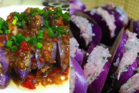 还有一种做法就是广东客家人的拿手好菜了,差不多每家每户都会做这道菜,就是酿茄子了。去买肉的时候洗干净后并把肉搅碎。把葱头和蒜头也剁成蓉。小虾米少许,然后把这些全部加到肉里面去。再在肉里加入少许的生粉,打一颗进鸡蛋进去并搅均匀。把茄子切成一大块的,最好是斜着切,看上去有点像平行四边形的,然后把肉馅塞进去。