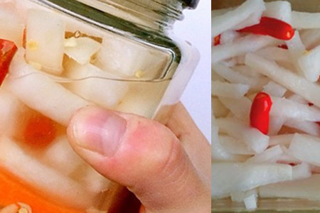 第三步将切好的萝卜放进调好的汁水里,最好是漫过萝卜。盖上盖子密封3天左右,当萝卜的颜色变成透明的白,就可以拿出来尝尝味道了。