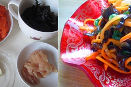 需要准备好新鲜的猪肉,木耳,以及胡萝卜。木耳用水将它泡开之后洗干净,切成条状,胡萝卜和猪肉同样是切成条状。