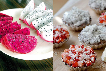 火龙果加番薯,牛奶,西米一起可以做成美味的甜品,经常食用还可以防止便秘。