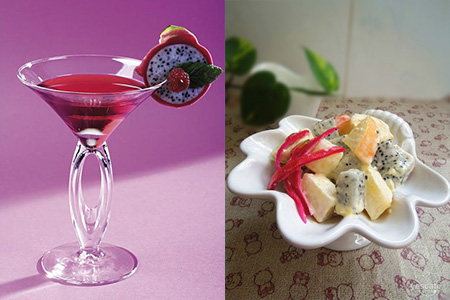 可以将火龙果切成小块,拌上其他的水果一起做成沙拉。常见的搭配有苹果,西红柿等,还可以加一点沙拉酱口感更好。