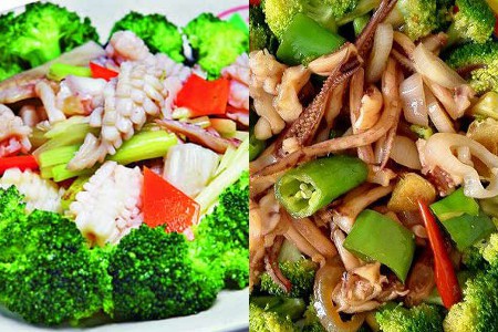 还有用来搭配鲜鱿鱼也是很完美的。买回来的鲜鱿鱼处理干净后切成一片片的。并用姜丝,生抽,料酒腌半个小时候。西兰花的处理还是一样,切成一块块并用盐水浸泡一小时候,浸泡过后用热水出一出水。锅热油开后,把鱿鱼放下去大火爆炒,炒到自动卷起来后把西兰花也倒下去大火爆炒,来回翻炒2分钟后加入蚝油调味,味道调好后就可以食用了。