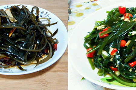在高温的天气也可以做一道凉拌海带丝,海带洗干净切成大约五毫米宽的海带丝备用,准备一个大的菜碗,依次放入蒜末、生抽、白糖、陈醋以及炒好的辣椒油,倒入海带丝搅拌均匀,还可以加入胡萝卜丝,这样会更美观一些。