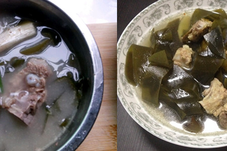 煮至十分钟左右加入干净的海米,少量精盐调味即可。如果感觉这道菜太过朴素,也可以试着做一道排骨海带汤。将切好的猪大排放入冷水下锅,这样可以去除排骨中的生血以及腥味,洗好的海带切成菱形。在砂锅中放入清汤,依次放入海带片、焯好的排骨、切好的生葱段,小火焖煮一个小时,待排骨完全煮烂,香味也变浓郁就可以加入鸡精,精盐进行调味了。