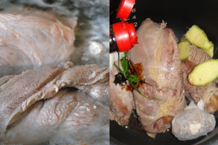 首先要选用新鲜的牛腱子肉。将买回的牛肉清洗干净之后,放在冷水锅中煮开。这样是为了能够清洗干净肉中的血水,去肉腥味。