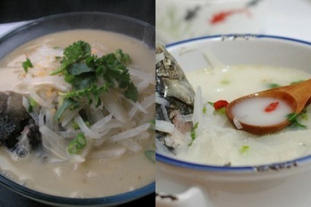白萝卜跟鲫鱼也是很好的搭配。鲫鱼宰杀并去掉内脏,然后洗干净。白萝卜去皮切丝。姜切片。葱切粒。待锅热油开后,先把鲫鱼放下去小火煎,煎至两面金黄色后加入适量的清水煮15分钟。然后把白萝卜丝和姜片也陆续的放下去一起中小火煮。再煮10分钟后,汤水已经变成奶白色。加入调味料,少许盐巴,料酒,胡椒粉。