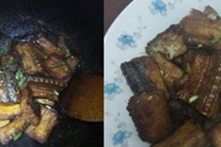 然后加入之前准备好的白糖,等糖融化之后再加入料酒、生抽、盐等调料,翻炒均匀。再加入适量的纯净水,然后开大火,慢慢的将锅中的汤汁收干,等汤汁收干之后就可以出锅了。这样一道色香味俱全的红烧鳗鱼干就做成了,非常的简单,也非常的容易学。