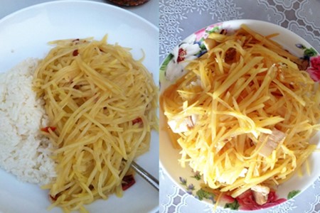 酸辣土豆丝盖饭的做法。