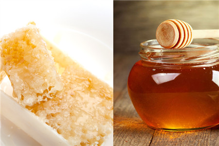 上图左为天然蜜,右图为甘露蜜。
