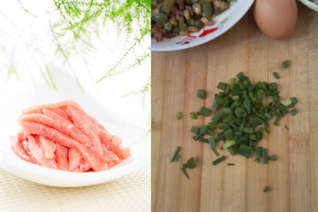 第一步先将需要的各类食材准备好。将我们的背柳肉切成丝,注意大小均匀适中,将肉丝放进碗中,加入我们少量的豆瓣酱,花椒,红薯粉,料酒,用手抓匀后放在一旁待用。再准备一点生姜丝和蒜片,将葱切成段放在一旁待用。